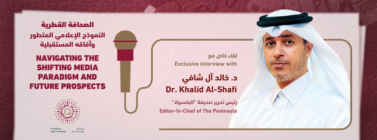 Dr. Khalid Al-Shafi, a distinguished Qatari journalist and the Editor-in-Chief of The Peninsula newspaper, an English daily which holds a central position within this media arena, being one of the inspiring individuals to propel its development and growth. He also serves as an Assistant Professor in Mass Communication at Qatar University. With a Ph.D. in Media, his career trajectory has been marked by accomplishments and contributions that have significantly impacted the country’s media landscape. Al-Shafi’s journey began at Qatar News Agency (QNA) in 1991, where he ascended through the ranks to eventually become the Managing Editor. He further assumed vital roles in various ministries, from the Ministry of Business and Trade, now known as the Ministry of Commerce and Industry, to the Ministry of Foreign Affairs, including acting as the Deputy Head of Mission and Chargé d’Affaires in Thailand. With a rich history in Qatari journalism, Al-Shafi’s insights reflect the transformation and potential of media, paving the way for the future. We had the privilege of engaging in an illuminating conversation with him to delve deeper into his perspectives and unravel the intricate and deeply rooted scene of Qatar’s media landscape.